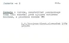 Korpus več kot 25.000 kartotečnih listkov vsebuje opredelitve glasbenih pojmov in primere ustreznih terminoloških zvez, kot so se rabile v stroki od leta 1920 do ok. 1980. Delo je opravila komisija v sestavi dr. Dragotin Cvetko (†), dr. Zmaga Kumer (†), dr. Jože Sivec (†) in dr. Ivan Klemenčič. Komisija je delovala od 1976 do 1983, ko je izšel edini delni tiskani rezultat, to je Glasbeni terminološki slovar: Glasbila in izvajalci; Poskusni snopič (Ljubljana: SAZU, 1983). Za interno uporabo je na Muzikološkem inštitutu na voljo zbirka v fizični obliki in tudi v digitalizirani obliki. V načrtu je spletna objava digitaliziranega gradiva.